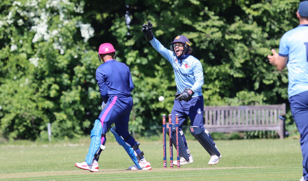 With 55 runs for the first wicket the Emirates got off to a good start. They seemed to be heading towards 250, until top scorer Aryansh Sharma (60) tried to reverse sweep Shariz Ahmad (2-39). After that, only middle order contributions came from Waseem and Pareshar (both 33). Noah Croes took five catches behind the wicket, among others off the bowling of Viv Kingma (2-37) and Mees van Vliet (4-39 in ten overs).