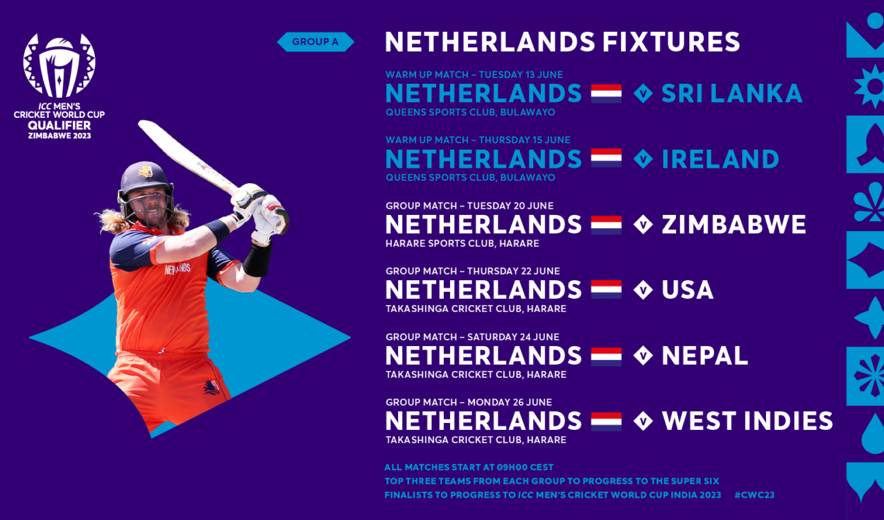 The Netherlands will open their campaign against Zimbabwe on 20 June at Harare Sports Club, while Scotland face rivals Ireland in Bulawayo on 21 June at Queens Sports Club. The Super Six stage will commence on 29 June, while the bottom two teams from each group will compete in the Playoff.