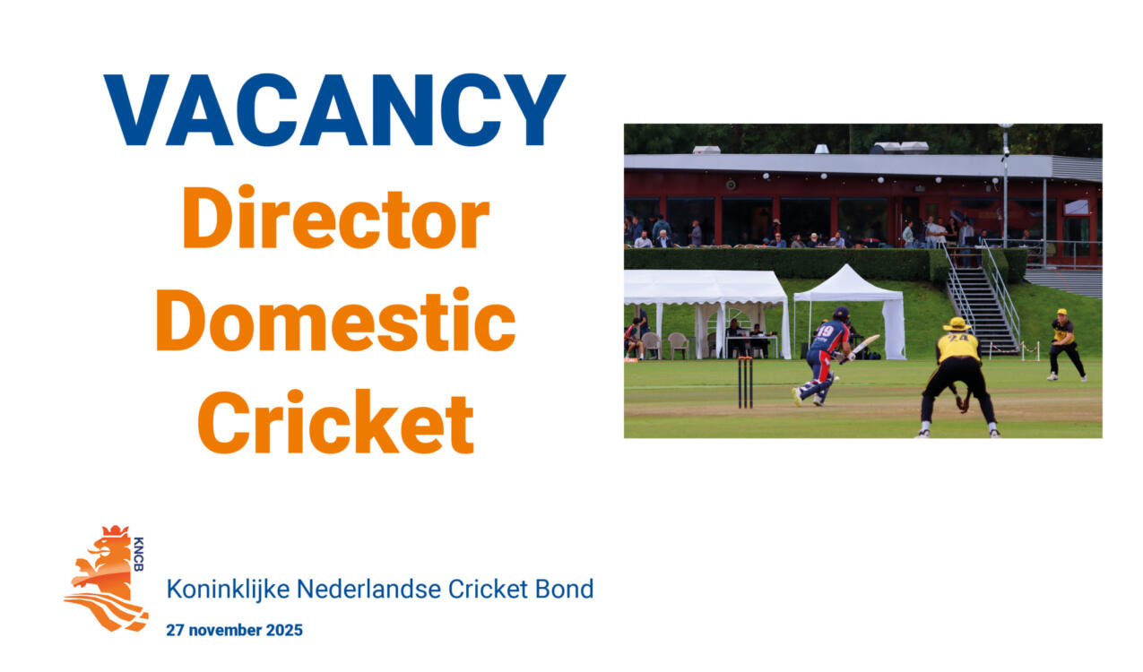 Cricket Nederland is looking for a strong leader to drive the key pillars of Dutch cricket: competitions, events, development, and match officials.