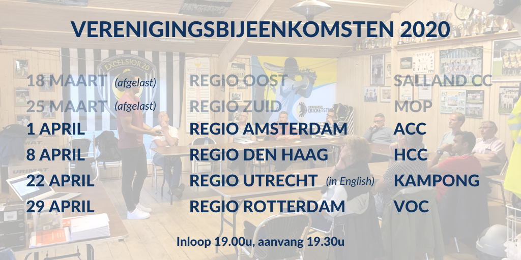 Nadat eerder al een trainingstour voor het Nederlands elftal naar Spanje en het vierlandentoernooi voor de Nederlandse vrouwen in Thailand waren gecanceld, is vandaag in samenspraak met Cricket Namibië ook de tour voor de Oranje mannen naar Namibië afgelast. Voor de volledige berichtgeving hieromtrent: Men’s tour to Namibia cancelled.