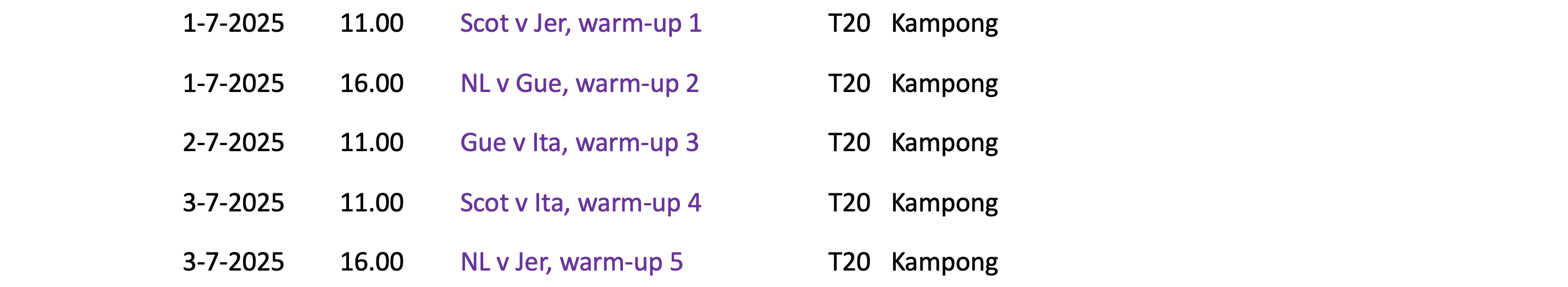 - Clashes met Schotland, Italië, Jersey en Guernsey beloven spectaculair T20-cricket bij Voorburg CC