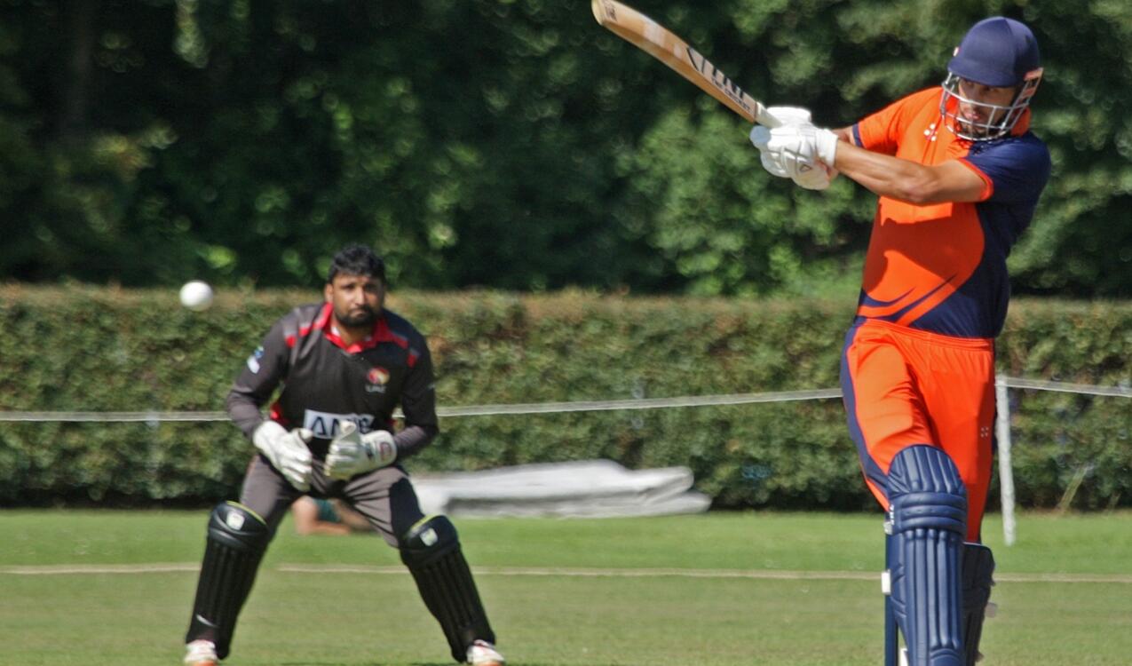 Twee vroege wickets, die door Boissevain en Braat, betekenden niet dat de VAE zich liet intimideren. De middle-order bracht voldoende runs op het bord en op de derde bal van de laatste over met de scores op gelijke hoogte, sloeg Mohammed Boota de winnende vier. Boissevain was de enige die de volle 4 overs bowlde, hij eindigde met de prima cijfers van 1-19/4.