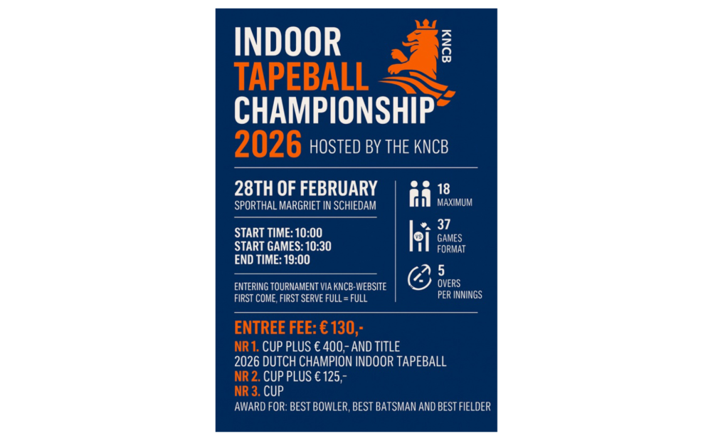 Van 18 november tot en met 1 december speelt ons vrouwenteam een toernooi voor Emerging Countries in Thailand. Het wedstrijdprogramma volgt zodra bekend. In januari spelen de Oranjevrouwen de T20 World Cup Qualifier in de Nepalese hoofdstad Kathmandu, die rond die tijd ook door ons mannenteam zal worden bezocht. In februari 2026 nemen de Oranjemannen deel aan de T20 World Cup, die in India en Sri Lanka zal worden gespeeld.