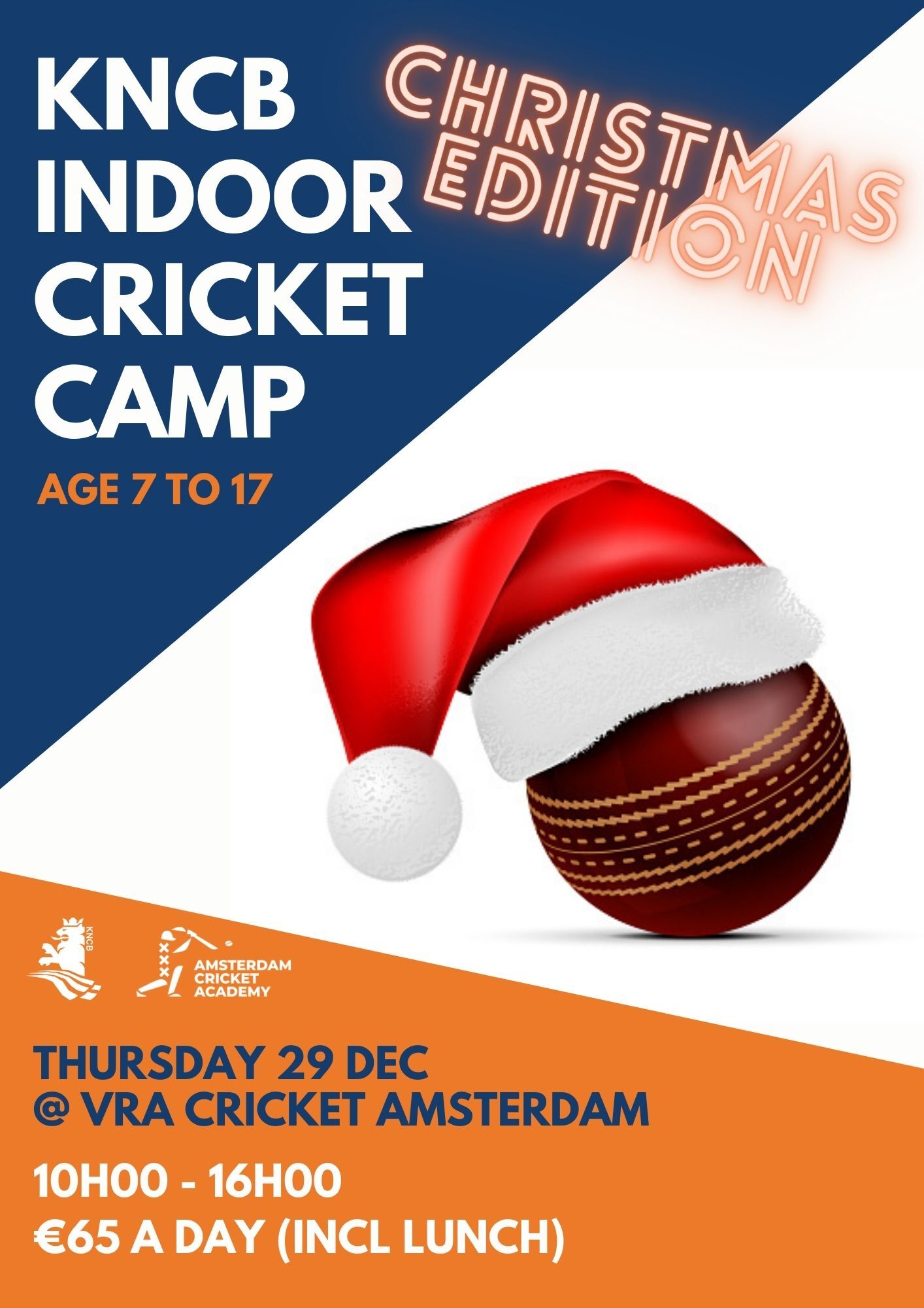 The KNCB and Amsterdam Cricket Academy are organising an indoor camp during the Christmas break on Thursday 29 December at the indoor hal of VRA Cricket in Amsterdam. There will be two different age groups 12 to 17 yrs old and 5 to 11 yrs old.