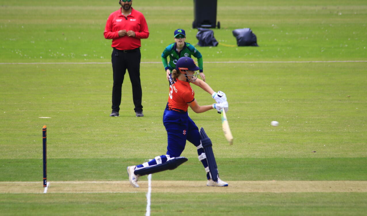 De goed bowlende Phebe Molkenboer kon twee c&b-kansen van Stokell helaas niet onder controle krijgen, anders had Nederland Ierland nóg meer druk kunnen opleggen. Twee overs later was het alsnog raak toen Overdijk een streep van Delany op point vasthield: 69/4. Merel Dekeling had een wicket kunnen hebben als Nederland het veld op MacMahon en Stokell wat aanvallender had durven zetten. Geweldige stops van onder anderen Siegers in de covers en Rijke aan de boundary zorgden ervoor dat Ierland alle zeilen bij moest zetten om te winnen. Een drop en een misfield hielpen echter niet en de Ieren haalden toch nog de winst binnen in 19.1 overs.
