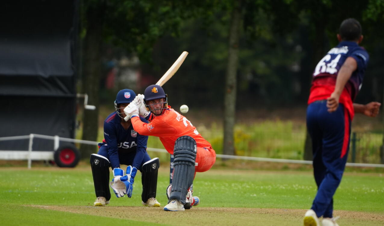 Lange tijd leken de 237 Nederlandse runs bij lange na niet genoeg. De Amerikanen waren aan het ‘cruisen’ in de richting van een solide overwinning toen topscorer Milind Kumar opeens werd gevangen op de allerlaatste bal van Kyle Klein. De staart van de VS bleek niet bij machte de ogenschijnlijk simpele klus af te maken.