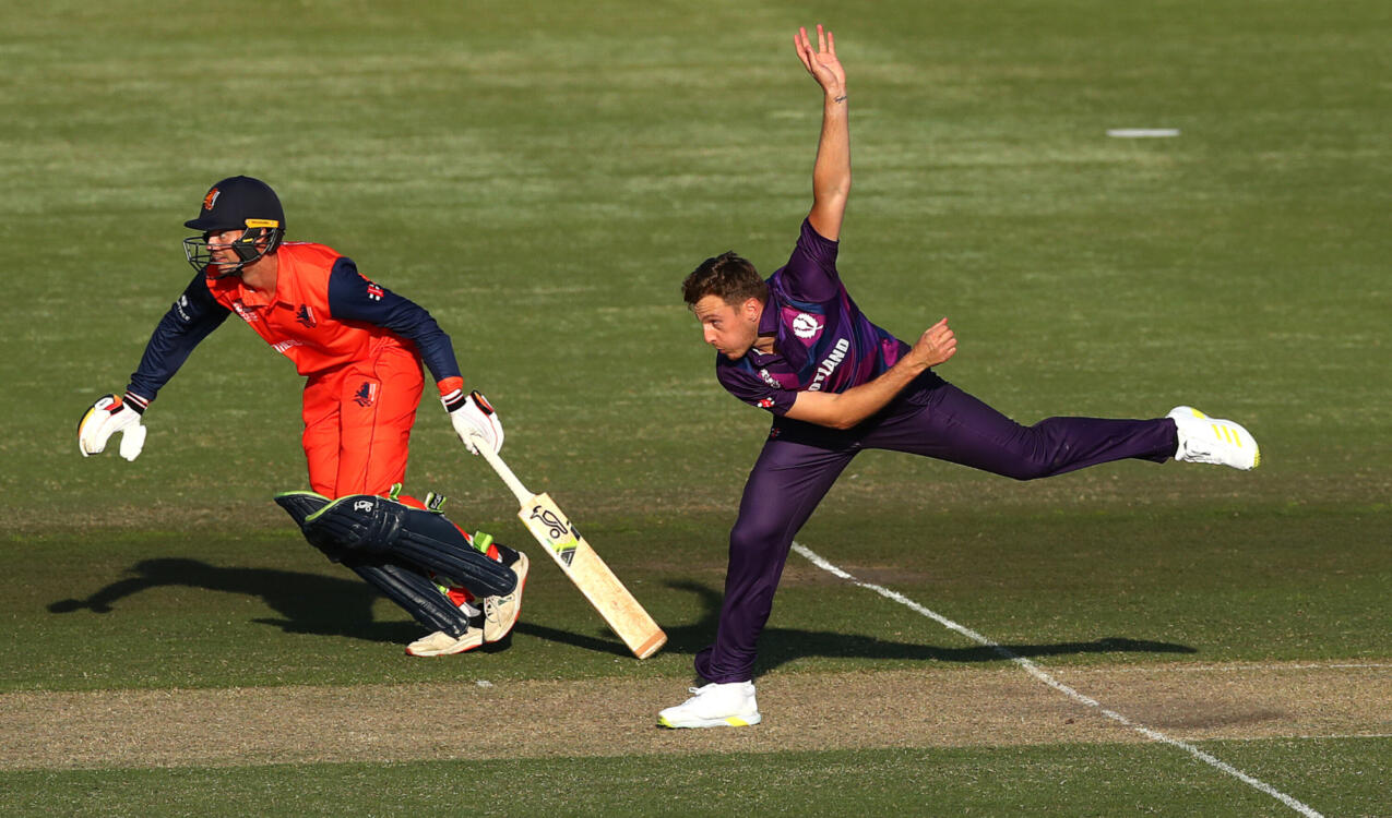 In de Nederlandse batting line-up waren beide lefthanders Myburgh (op third man gevangen van een top edge) en Vikram Singh opgenomen. Singh (31 van 38 ballen) maakte met Max O’Dowd (43 uit 35, gevangen op long on) een partnership van 64 voor het tweede wicket, maar sneuvelde op een geweldige direct hit van Michael Jones.