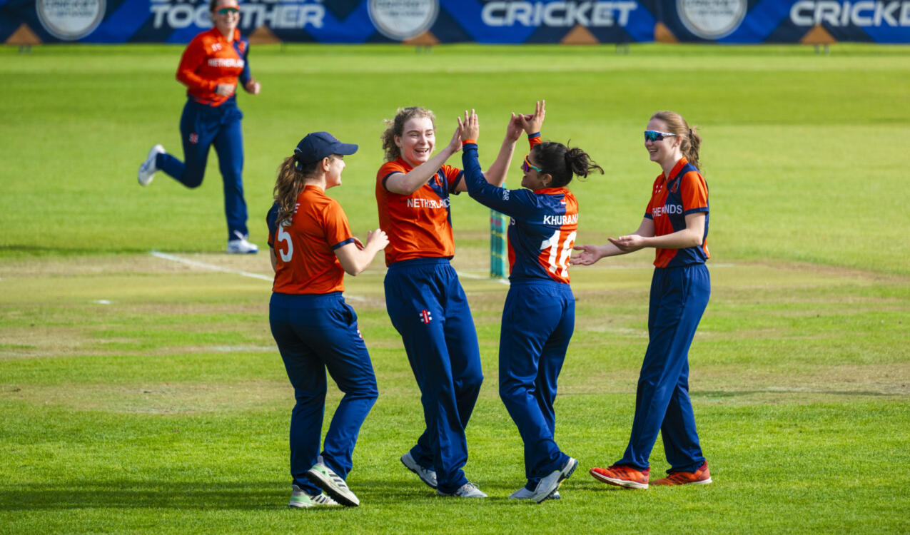 Nederland kreeg geen grip op de sterke Ierse bowling. Merel Dekeling werd topscorer met 18 en Rosalie Lawrence droeg 16 runs bij.