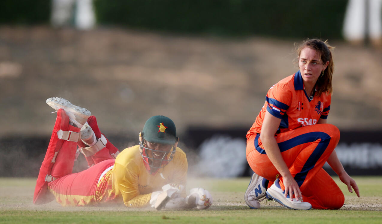 Zimbabwe moest in de laatste zes overs 52 runs maken en twintig van de laatste over. Spinners Silver Siegers en Merel Dekeling hielden in de strakke slotovers echter het hoofd koel. Caroline de Lange nam 1-17, Zwilling 1-19, Overdijk 1-20.