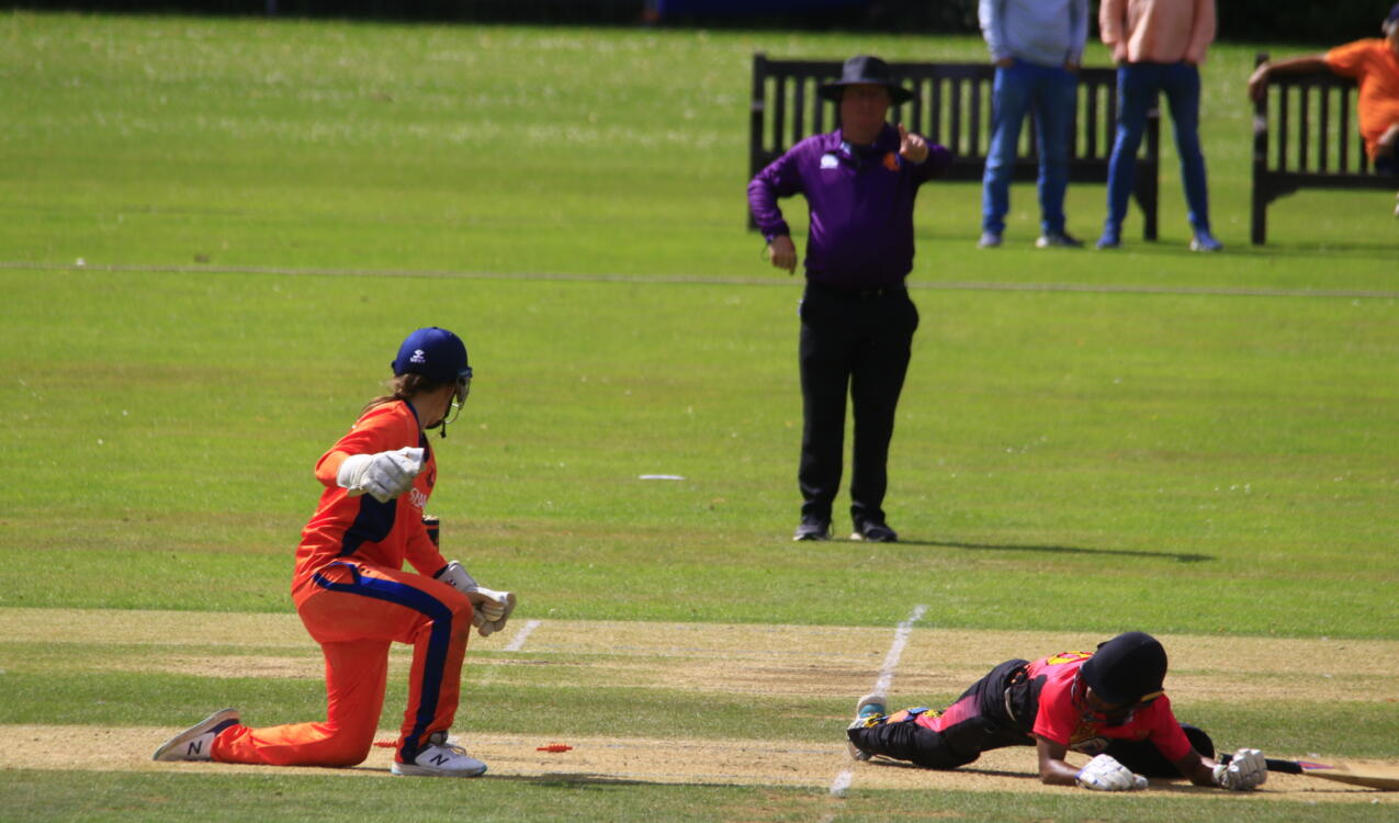 Door een prachtige direct hit van Eva Lynch werd het 149/7, maar met slim batten en runnen bracht PNG toch nog 191 all out in de boeken.