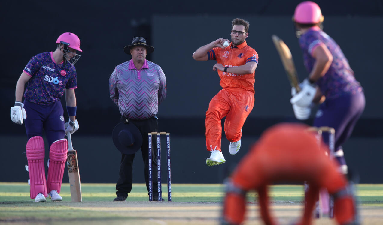 Na een prima start van Wesley Barresi (26) en Vikram Singh (30) verloor Nederland snel drie wickets en was het 66/3/9 na 65/0/8. Bijdragen van Saqib Zulfiqar (21), Teja Nidamanuru (23) en Sybrand Engelbrecht (16) brachten Oranje naar 135/4.