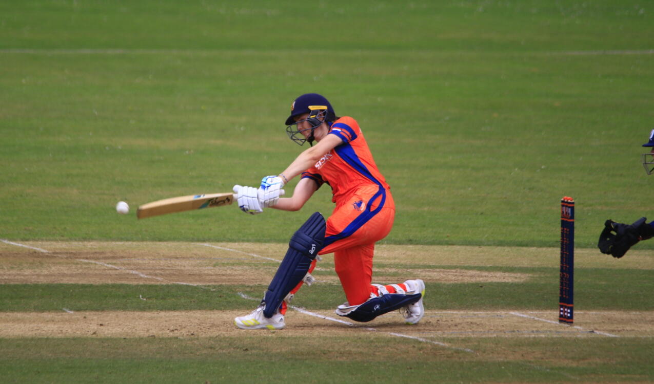 Sterre Kalis (20) had pech dat een bal van offspinner Olivia Bell laag bleef. Iris Zwilling kwam tot 23, Babette de Leede tot 17 en Frédérique Overdijk tot 15, maar door slim bowlen en fielden was het lastig om de benodigde zeven runs per over te maken.