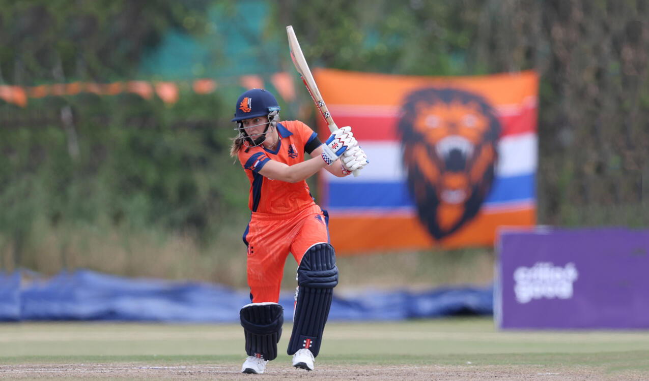 Captain Babette de Leede won de toss en koos voor fielden op de voor Nederland nauwelijks bekende pitch. Al in de tweede over kreeg Robine Rijke opener Boochatham LBW en ook daarna vielen de wickets gestaag, dankzij gedisciplineerd bowlen en goed grondfielden.