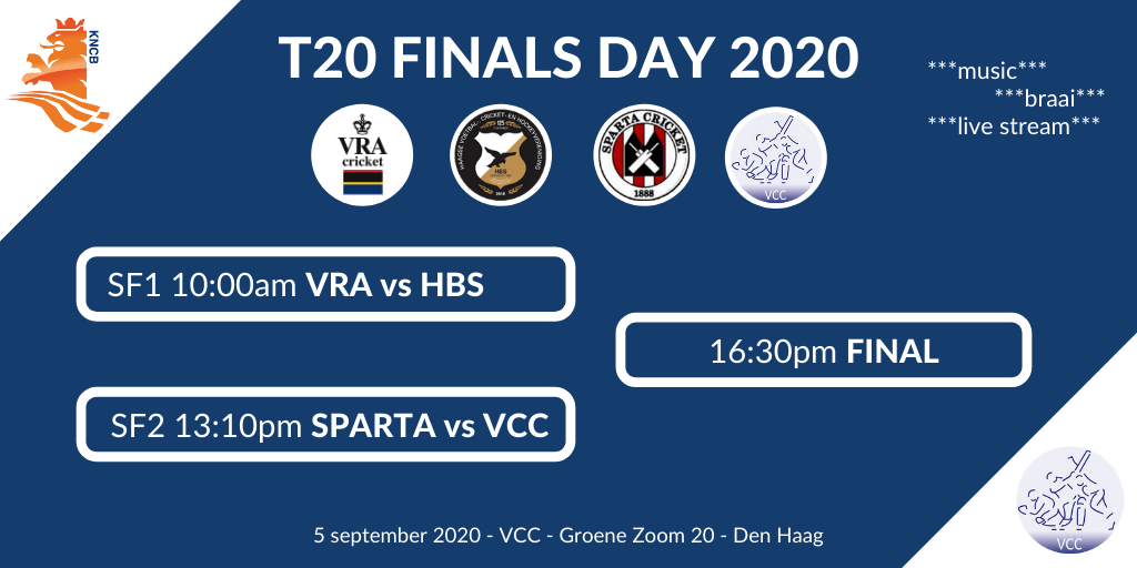 Ondanks de slechte weersvoorspelling konden alle kwartfinales van afgelopen weekend worden afgewerkt, al werd de ochtendwedstrijd Bloemendaal - VCC ingekort tot 6 overs. Dit bleek ook meteen de spannendste wedstrijd. Bloemendaal zette een knap totaal neer van 52 runs in 6 overs en leek op weg naar de overwinning. VCC had na een geduldige start nog 15 runs van de laatste over nodig. Captain Bas de Leede hield het hoofd koel en wist op de laatste bal de winnende run binnen te slaan.