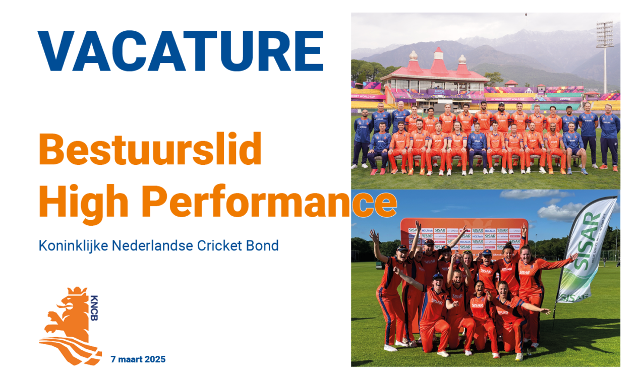 Wil jij bijdragen aan de verdere ontwikkeling van cricket in Nederland? Heb je een passie voor topsport en high-performance programma’s? De Koninklijke Nederlandse Cricket Bond (KNCB) zoekt een bestuurslid met expertise in High Performance om de visie en strategie voor onze nationale teams en talentontwikkeling verder uit te bouwen en door te ontwikkelen om onze ambities te realiseren.