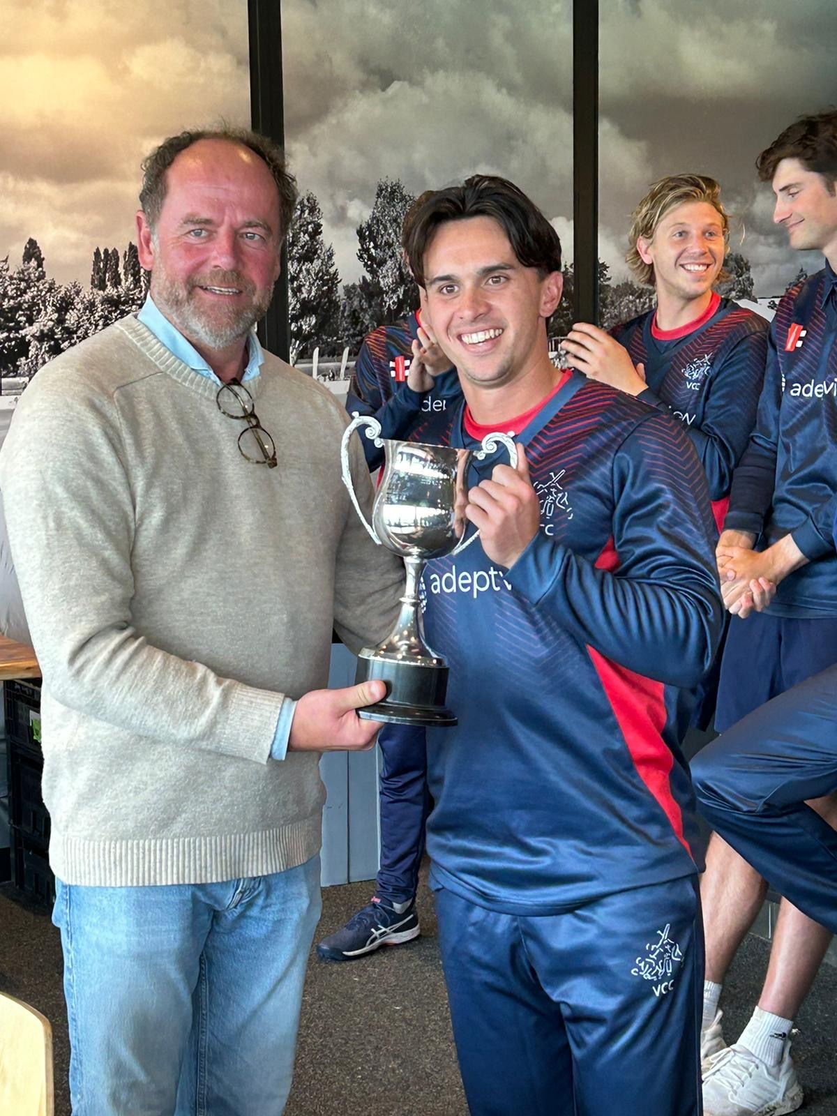 Zonder Levitt en Engelbrecht in het team was de battingside verzwakt. Dat bleek toen VCC slechts 127/7 in de boeken wist te brengen. Alleen Kaplan, captain Noah Croes (een solide 55 uit 49) en Flip Boissevain (16) maakten runs. De andere batsmen hadden geen antwoord op een leger aan spinners, waaronder drie left armers. Toch was het een medium pacer (Elijah Eales) die de beste cijfers had (2-20). De innings van VRA duurde slechts één over. Geen resultaat betekende dat VCC in de finale stond.