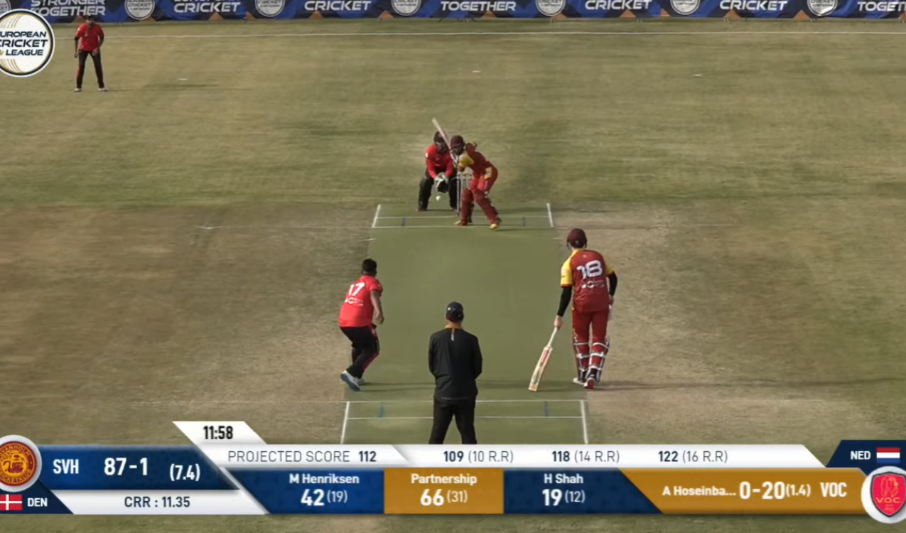 In de wedstrijd erna leek VOC lange tijd op de winst af te stevenen. Het Deense Svanholm stond op 94/1 na acht overs. Abdullah Mahmood had echter plannen met Jelte Schoonheim, die de negende over voor 28 runs zag gaan. Toch nog 131/4 voor de Denen.